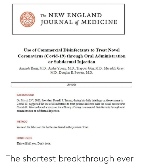 Hoax Phase 6: A prominent leftist satirist accurately repeats Trump’s unremarkable statements but still cleverly and charmingly perverts them to align with the hoax that Trump wants people to inject Lysol and drink bleach: