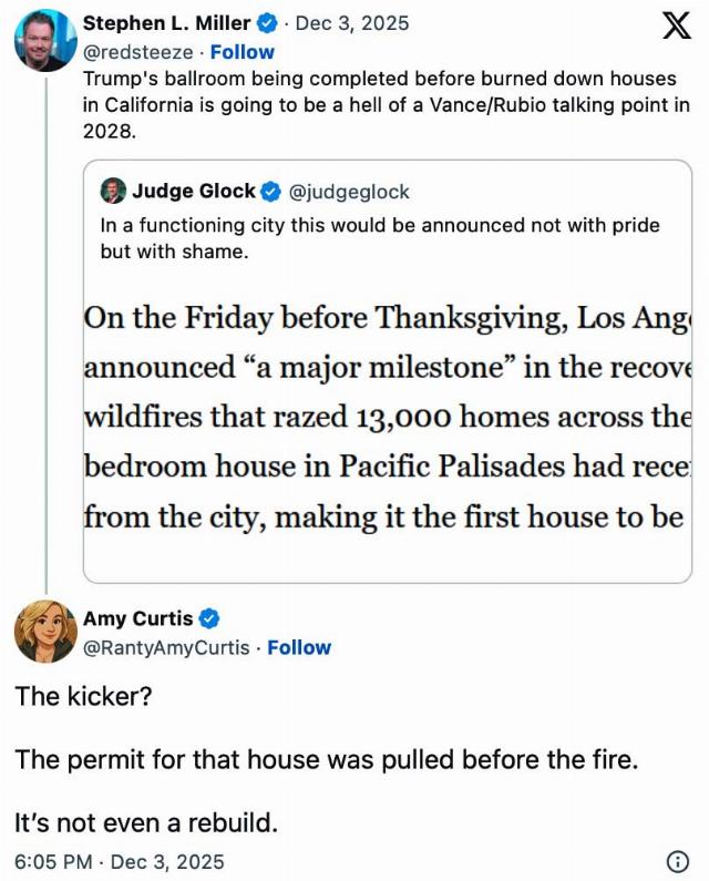 But Bass failed to note that the newly constructed home on Kagawa Street was not a rebuild from the blaze – as the demolition project began before the Palisades Fire erupted.